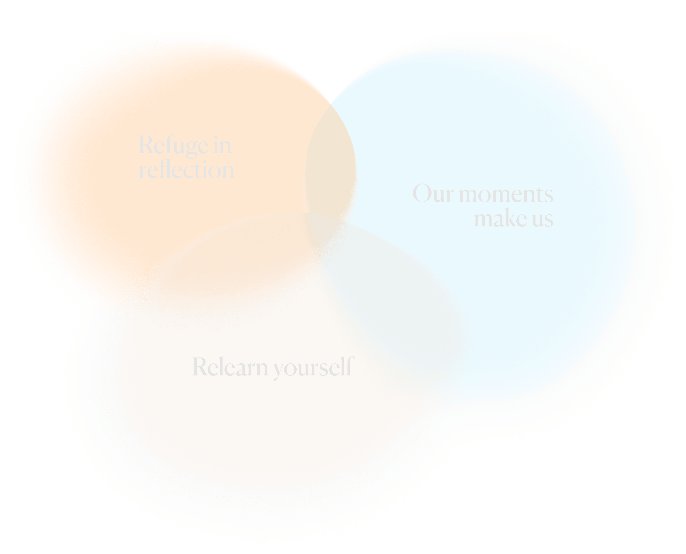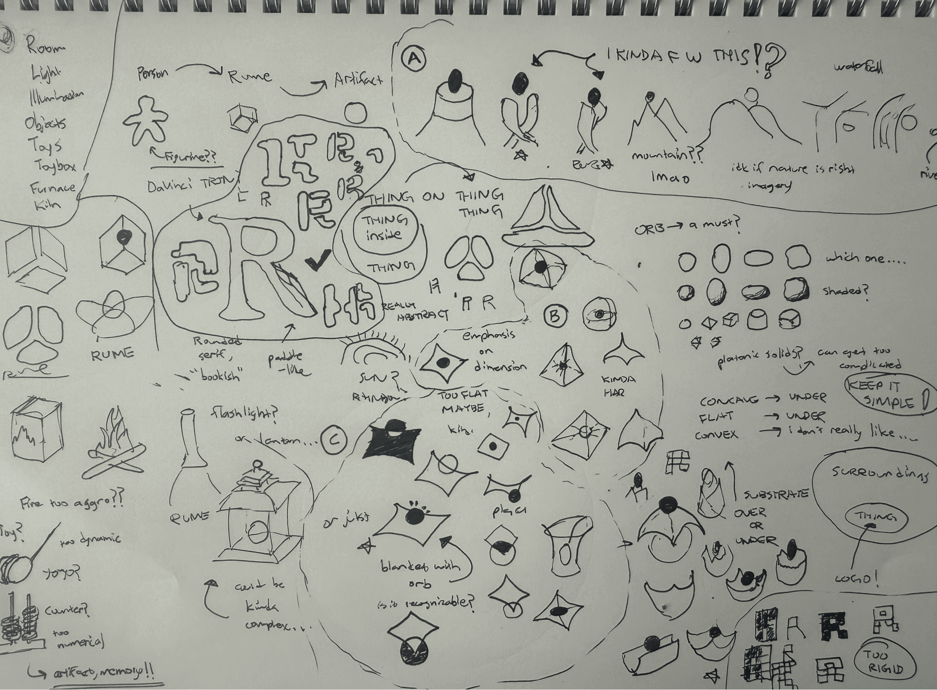 We thought deeply about Rume's identity from the outset: shapes, colors, objects that define the core of our concept. We were drawn to motifs surrounding refuge, learning, and ritual. We looked to round, soft edges with room to contain things, and luminescent colors that are both comforting and evocative.