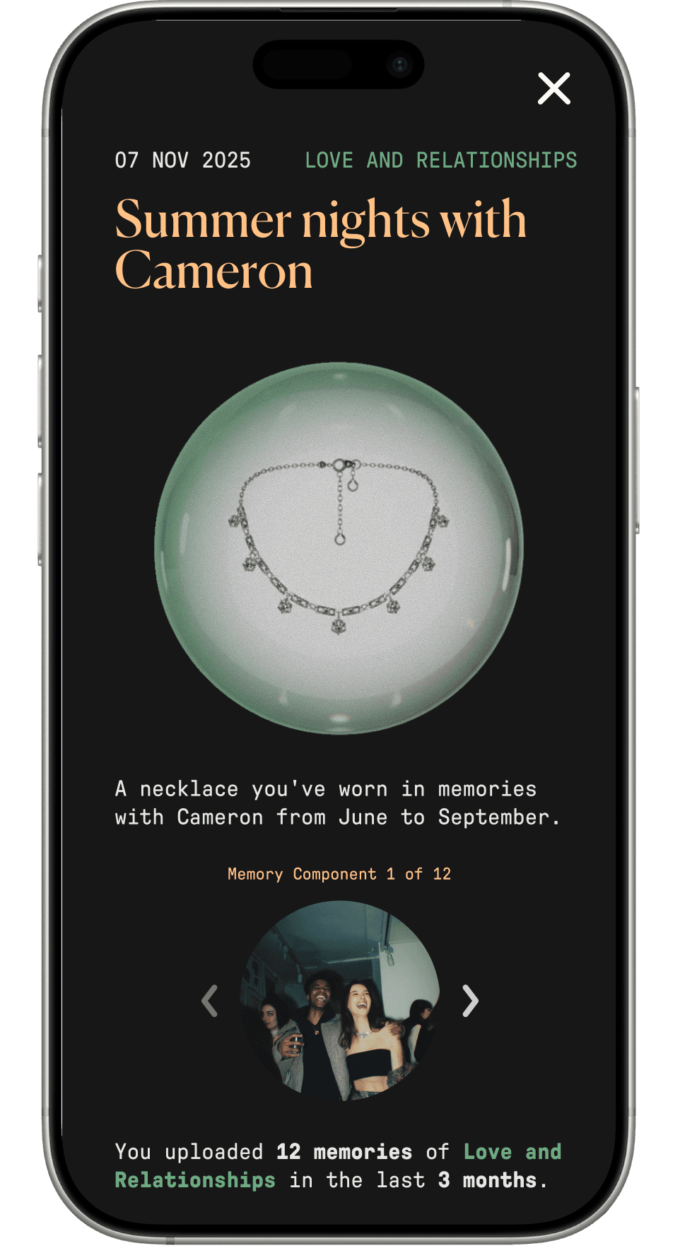 Over time, Rume uses object recognition AI to extract important objects from memories and preserve them in a gallery for reflection.