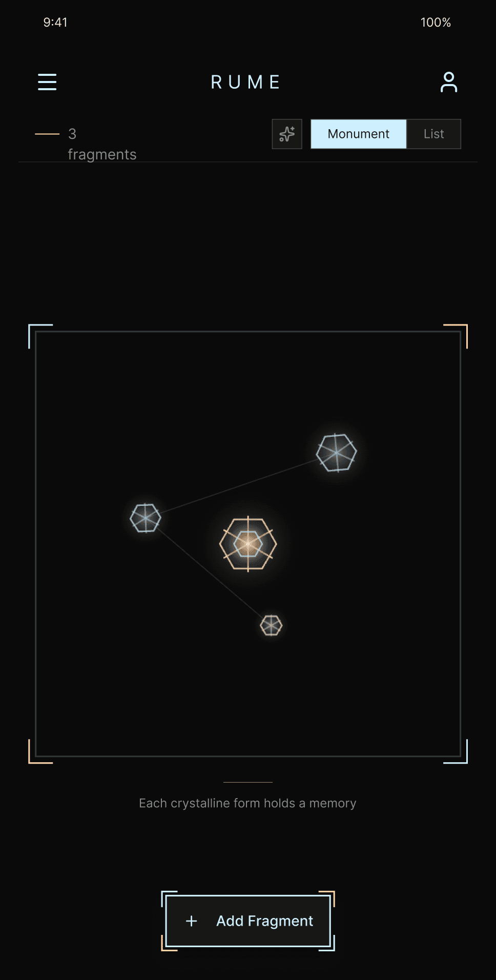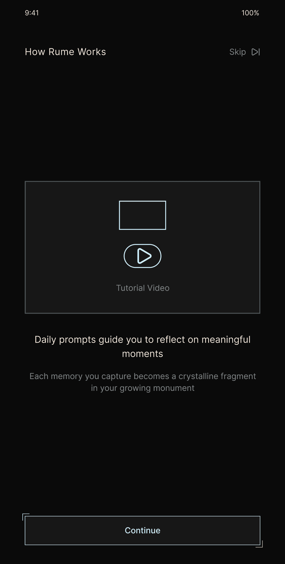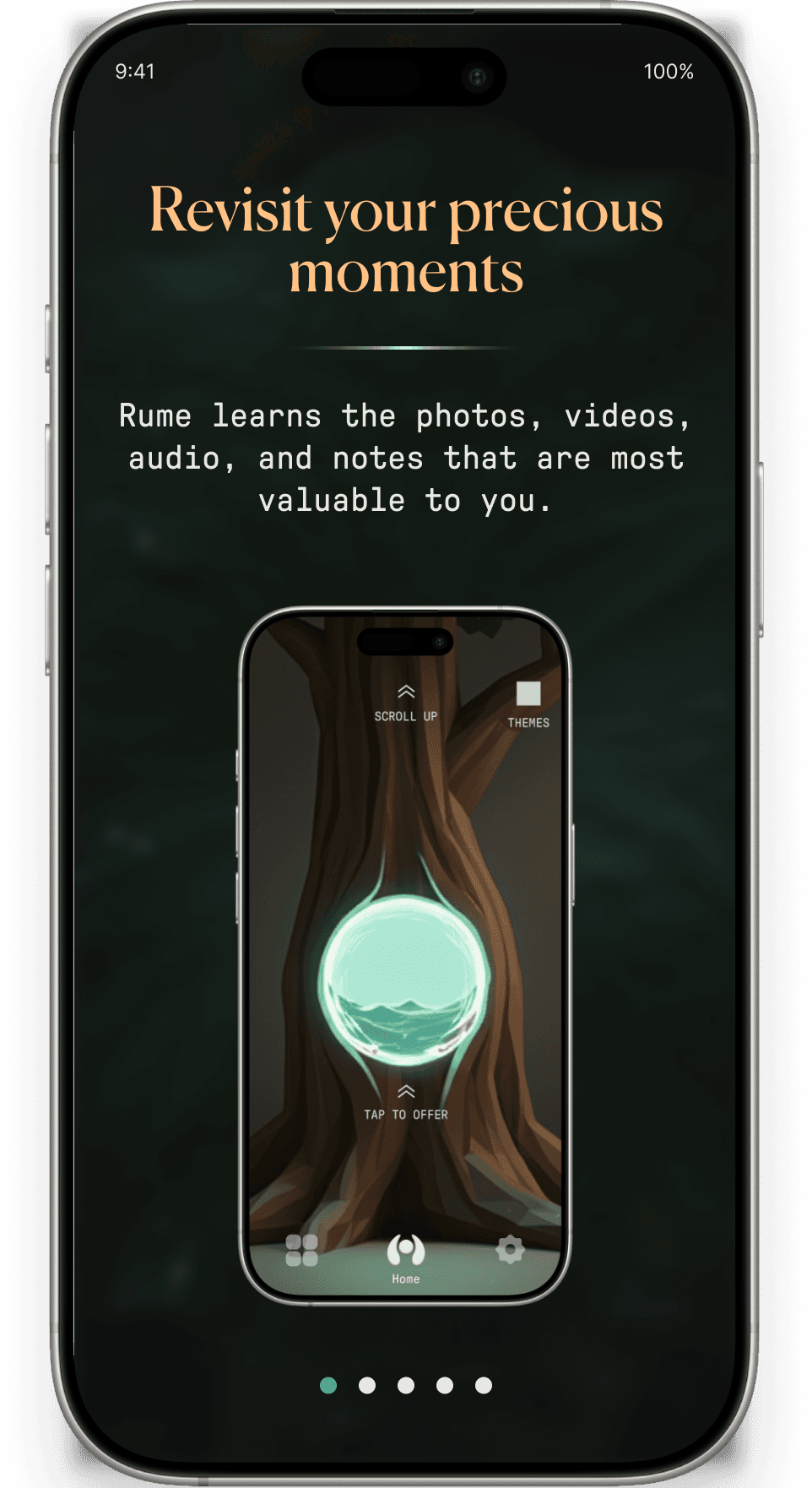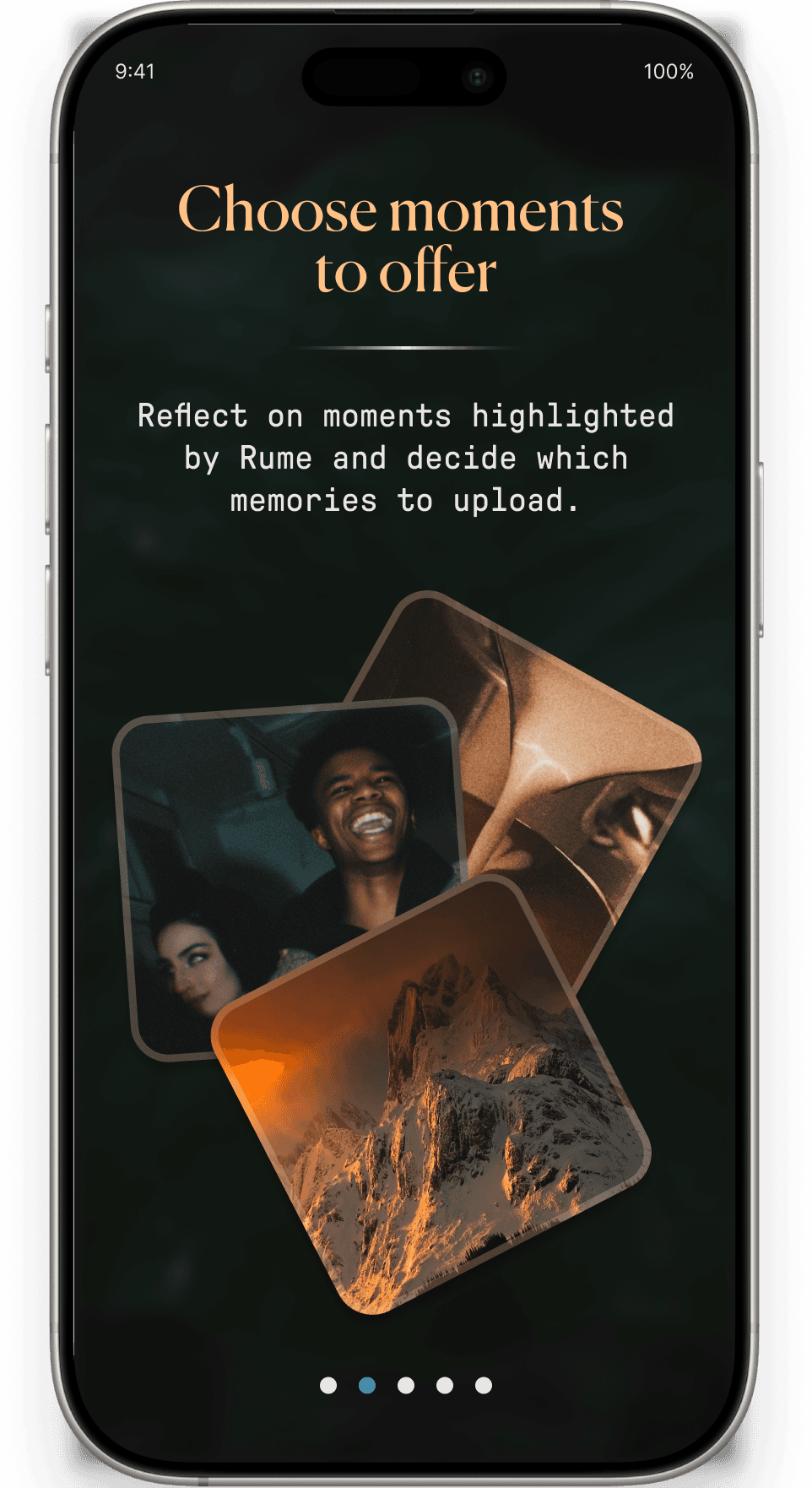 Rume is a memory collection app concept to encourage reflection through objects. We invite users to sift through recommended memories (photos, videos) and preserve them within Rume.